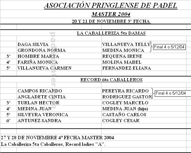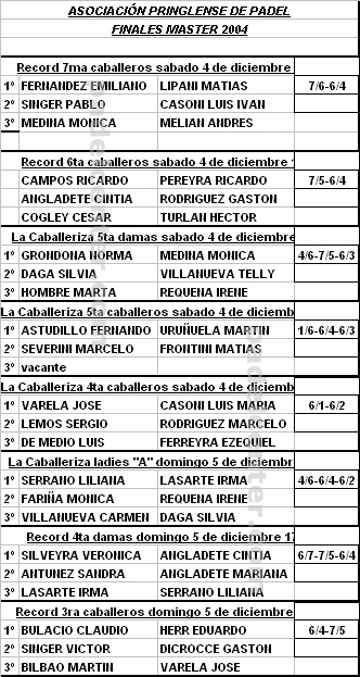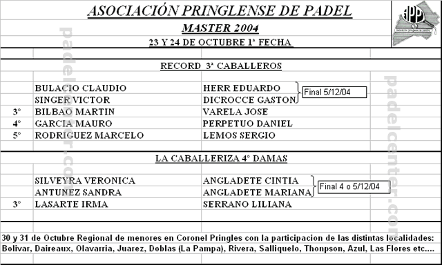 Se disputó la primera fecha del Master 2004 de la Asociación Pringlense de Padel.